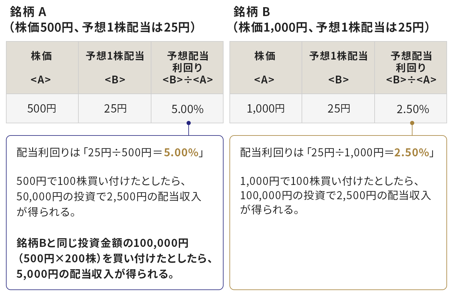 株価に対して、何パーセントの配当金を受け取れるかを示す株価指標です。